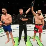 Ao som de “Born in the USA”, de Bruce Springsteen, os dois se abraçaram e se cumprimentaram antes de deixar o octógono.