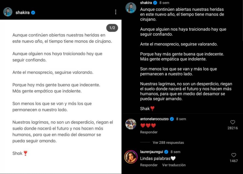 No início deste ano, Shakira postou um texto em sua conta Instagram.