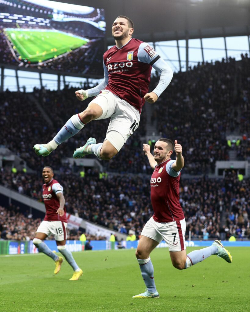 No objetivo Dibu Martínez; Young, Konsa, Mings e Digne em defesa; Coutinho, Kamara e Samson. como meio-campistas; Bailey, Watkins e Buendia no ataque.