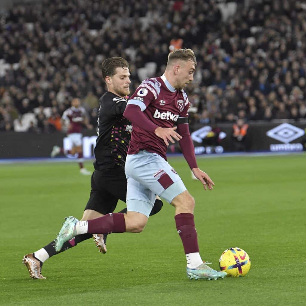 No objetivo Fabianski; Dawson, Ogbonna, e Cresswell. em defesa; Coufal, Paquetá, Rice e Emerson como meio-campistas; Bowen, Benrahma e Scamacca no ataque.