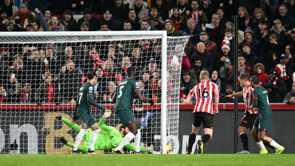 Parecia que Liverpool iria se igualar, mas Brentford fechou bem suas linhas e limpou todos os acessos.