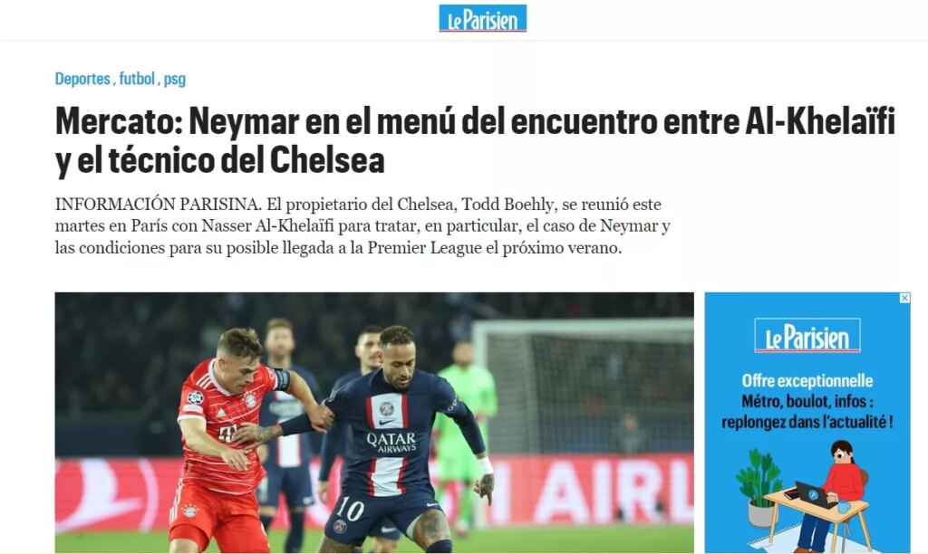 Le Parisien’ o jornal afirmou que o presidente do PSG Nasser Al-Khelaïfi se encontrou com o dono do Chelsea Todd Boehly na terça-feira para negociar a transferência de Neymar Jr. para os Blues.