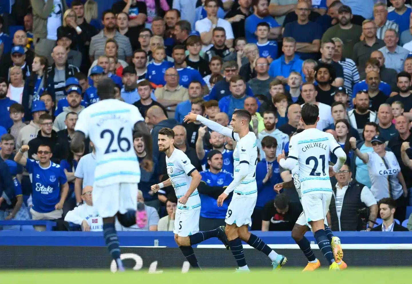 Jordan Pickford no gol; Seamus Coleman, Michael Keane, James Tarkowski e Ben Godfrey. como defensores; Alex Iwobi, Abdouyale Doucouré, Idrissa Gana Gueye, Amadou Onana e Dwight McNeil. no meio-campo; Demarai Grey na linha de frente.