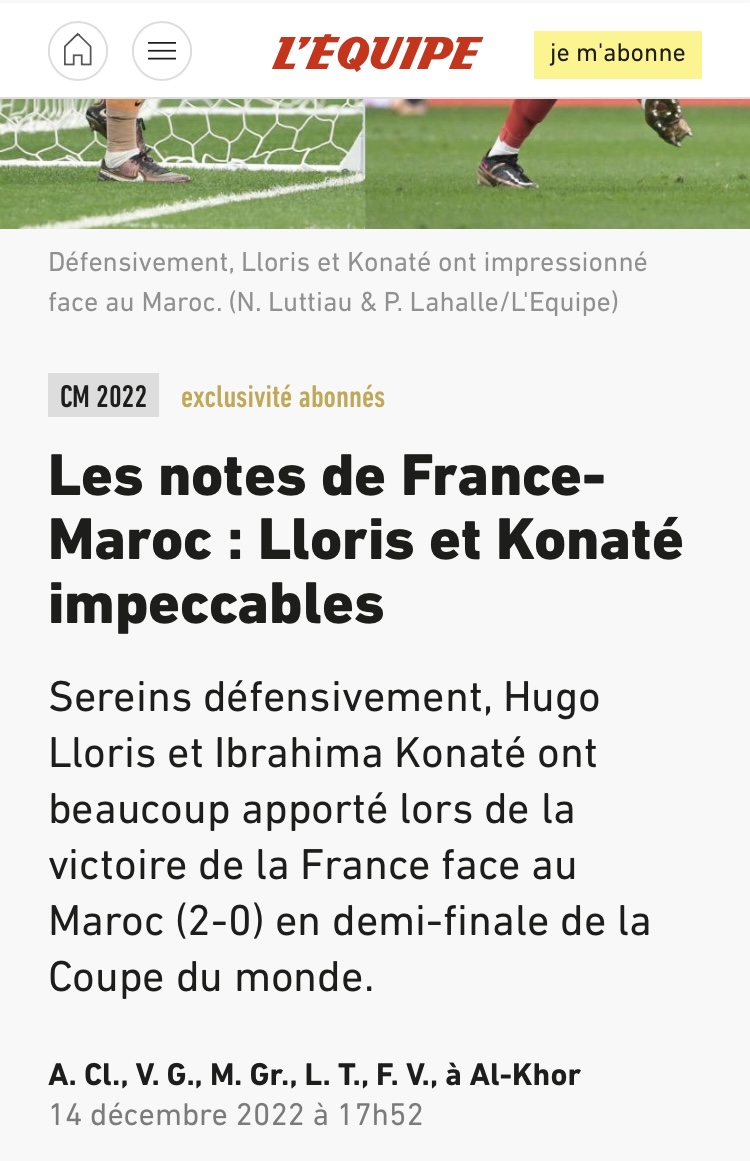 “Campeonato do Mundo 2022: os Blues vencem Marrocos e desafiam a Argentina na final”, foi a manchete em La Croix.