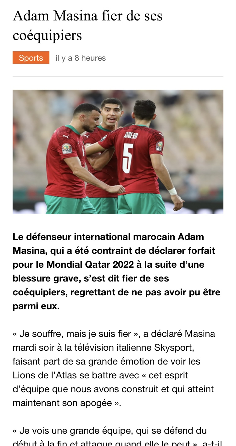 Outro jornal marroquino não faz muita referência ao jogo entre os africanos e os franceses, apenas alguns pequenos artigos de opinião. Também, comentários sobre alguns jogadores como Adam Massina, que falhou o Campeonato do Mundo devido a lesões.