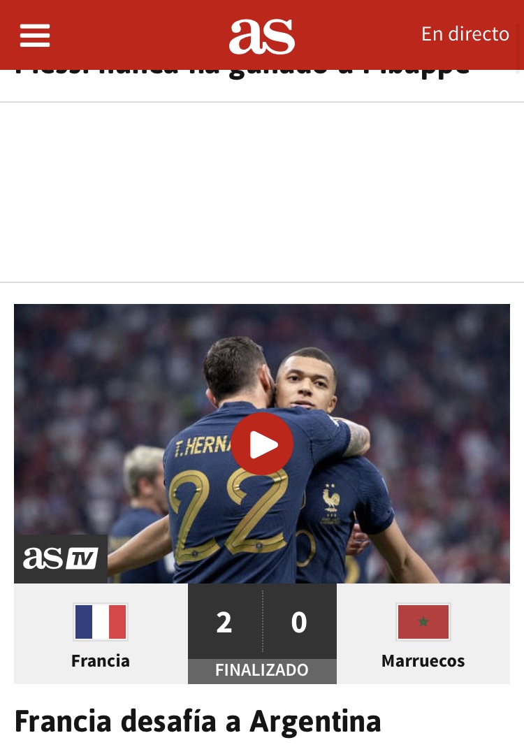O popular jornal espanhol publicou uma série de artigos sobre a vitória francesa a partir de várias perspectivas. Analisaram também o desempenho de Marrocos no Campeonato do Mundo.